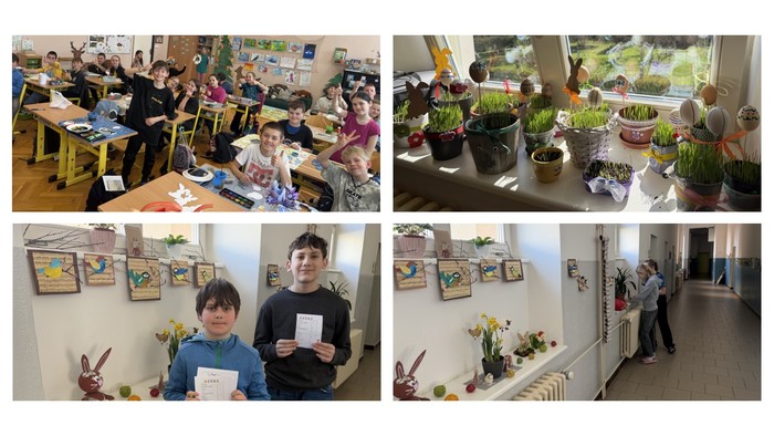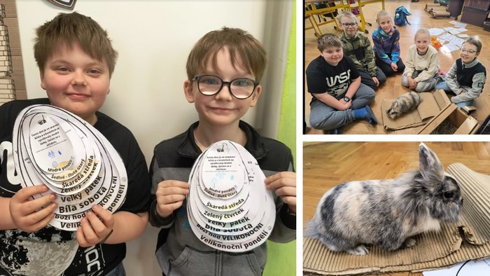 Na 1. stupni jsme si naplno užívali předvelikonoční období. Děti s nadšením vyráběly jarní dekorace, zdobily třídy a zároveň se učily novým věcem. Nechyběla ani milá návštěva "skoro-velikonočního" zajíčka, která vykouzlila úsměvy na všech tvářích. Společně jsme si tyto dny opravdu užili a teď se již těšíme na zítřejší koledu!