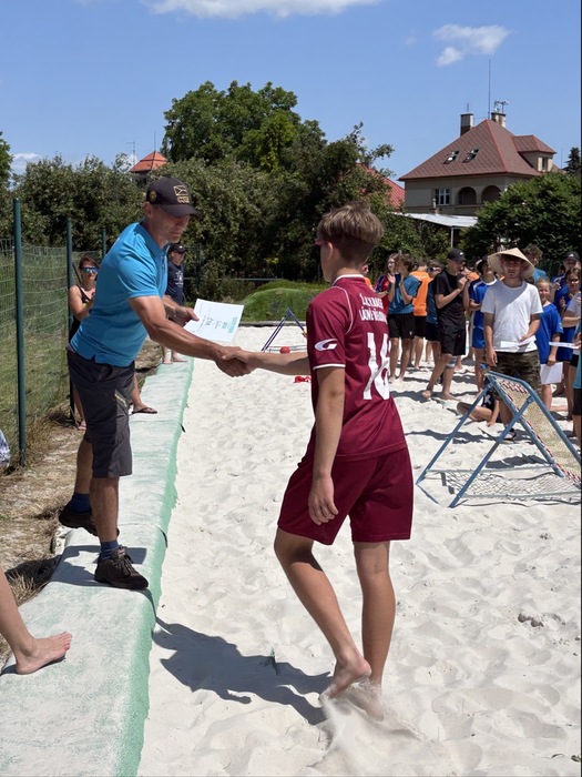 Žáci 9.tříd se v pátek 20.6. Zúčastnili turnaje Czech Beach Open - tedy mistrovství České republiky v plážovém Tchoukballu. Při své premiéře vybojovali v turnaji, kterého se zúčastnily i týmy z Polska a Maďarska, skvělé 5.místo. Chlapci předvedli skvělé výkony! Mrzet je může snad jen těsná porážka v prvním zápase a následné podlehnutí budoucím mistrům z jičínského gymnázia, všechny další zápasy už naši kluci vyhráli.