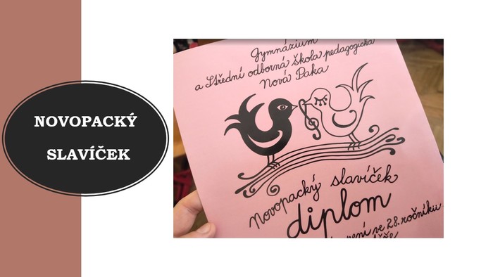 Ve svých kategoriích si V. Kovaříková (2.A) a E. Fléglová (2.A) vyzpívaly zlaté pásmo, Š. Jakubské (3.A) blahopřejeme ke krásnému 3. místu, J. Bartošovi (3.B) smekáme klobouk za speciální cenu za vlastní hudební doprovod, za reprezentaci děkujeme také J. Novákovi (3.B).
